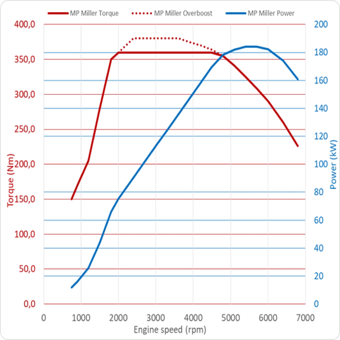 Following these requrirements you will achieve a Power/Torque curve as shown below.