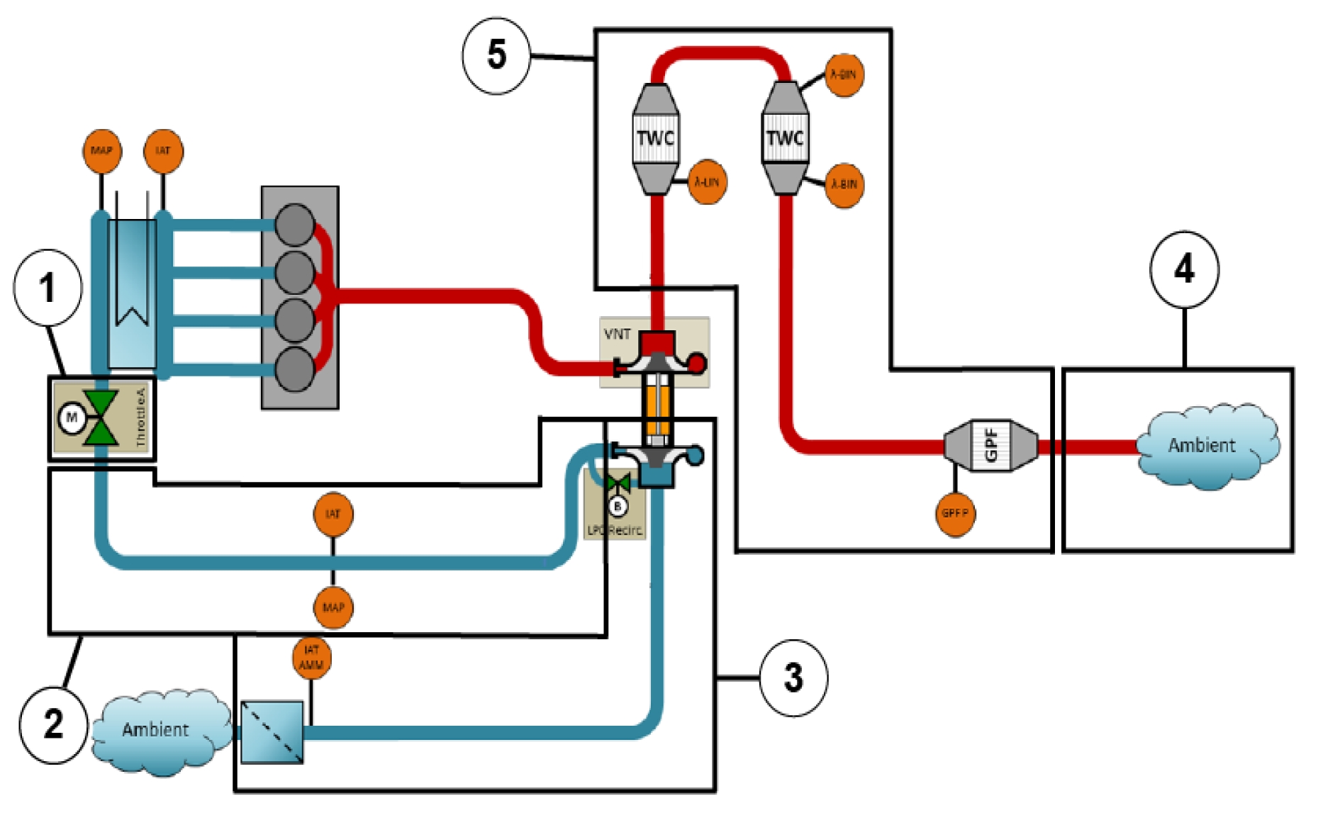 1, Pressure drop throttle to intake manifold