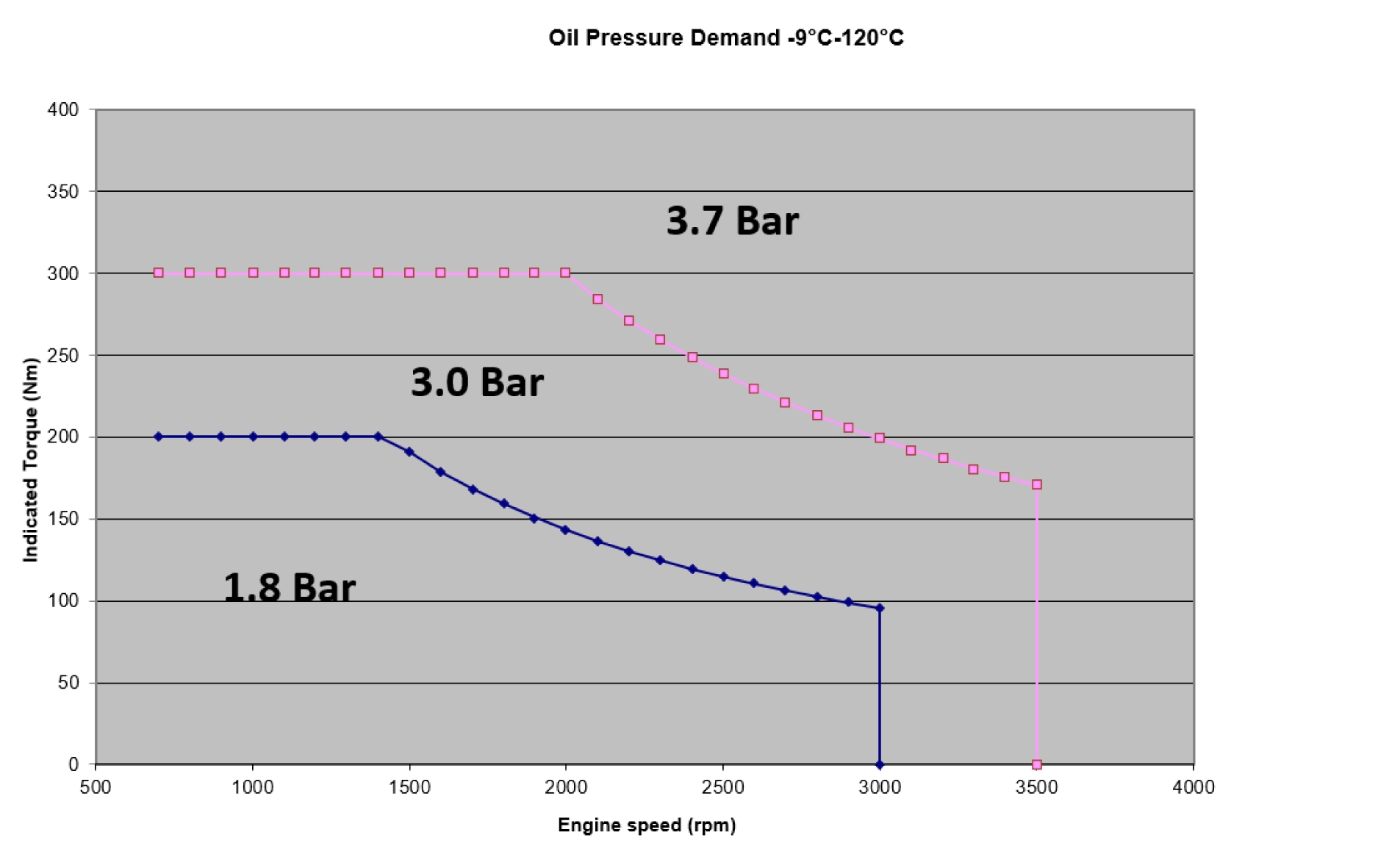 | 50 bar up to 4500 rpm, thereafter linear increase up to 57 bar @5900rpm |